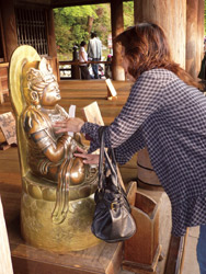 — Если судить по статистике, то верующих в стране гораздо больше, чем населения по официальной переписи. Почему? — Очень просто: многие японцы исповедуют одновременно и традиционный синтоизм, и проникший сюда позднее буддизм. Есть целый ряд необуддистских сект. В общем-то — полная мешанина: по синтоистскому обряду справляют рождение ребенка, свадьбы, по буддистскому — похороны. Религиозность в целом весьма поверхностная, более сводящаяся к исполнению определенных ритуалов, смысл которых не всегда понятен и тем, кто к ним прибегает: 1–2-го января сходить в храм, бросить куда-то монетку, поклониться, постучать в специальный барабан, пожелав себе тем самым всего наилучшего. Примерно так.