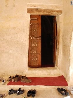 The entrance to the main church of the monastery, which was founded by the disciples of St. Anthony the Great, 4th century.