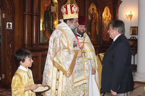 После этого состоялся прием в честь высокого гостя, в котором приняли участие архиепископ Дамаскин, сослужившее духовенство, Чрезвычайный и Полномочный Посол Российской Федерации в ЮАР А.А. Макаров и многочисленные прихожане.