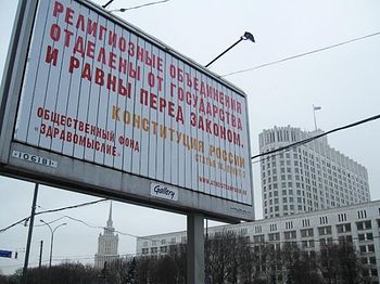 Те из нас, кто в сознательном возрасте застал режим научного атеизма - в то время уже в его уже закатной и сравнительно вегетарианской фазе - помнят, что в то время некоторые вещи были немыслимы. Например, тогда невозможно было представить себе клерикалов, проводящих общественные кампании и вывешивающих рекламные щиты хотя бы текстами советской конституции и прозрачным намеком на то, что советская власть ее-де не соблюдает.