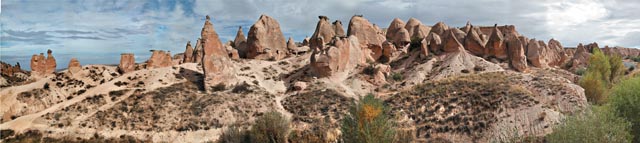 | Каппадокийский пейзаж: причудливые узоры, сложившиеся под многовековым воздействием ветров и дождей |