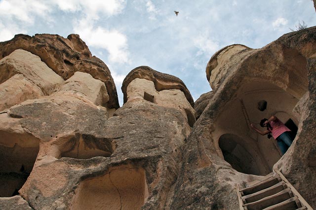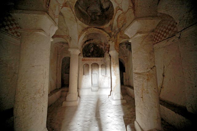| Один из храмов, построенных теми, кто укрывался от гонений римских императоров. Церковь (впрочем, как и жилище) вырубалась в скалах из очень мягкого камня, который хорошо поддавался обработке и после взаимодействия с воздухом затвердевал |
