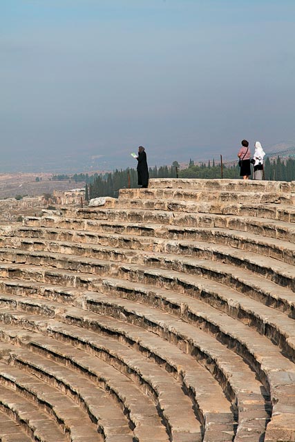 | Римский амфитеатр. Руководитель паломнической группы м. Евгения читает молитвенное правило |