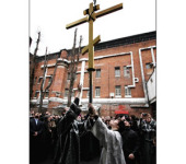 Чин освящения креста совершил епископ Дмитровский Александр, председатель Комиссии по социальной деятельности в местах лишения свободы при Епархиальном совете г. Москвы. Затем заключенные подняли и установили крест на вершину храма.