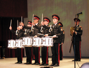 В концерте, приуроченном ко Дню Победы, приняли участие коллективы московских кадетских корпусов. Громкими аплодисментами сопровождались выступления юных барабанщиков и ансамбля песни и пляски Московского казачьего кадетского корпуса им.М.А.Шолохова, оркестра и ансамбля саксофонистов Московскогокадетскогомузыкальногокорпуса.