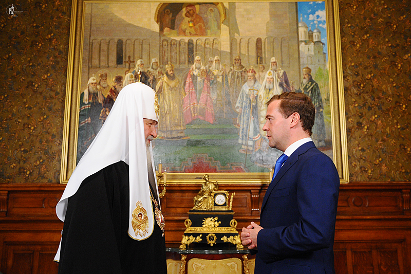 Затем состоялась краткая беседа Святейшего Патриарха Кирилла и Д.А. Медведева, сообщает Пресс-служба Патриарха Московского и всея Руси.