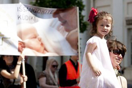 "Шествие за то, чтобы не делались аборты, чтобы люди жили и знали, что созданы не для того, чтобы убивать человека, а помогать всем живущим вокруг. Без сомнения, нужно помочь всем тем малышам, которых вынашивают матери", - говорил координатор акции, священник Константино-Михайловского храма Вильнюса Константин Лазукин.