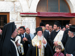 В праздничном богослужении также приняли участие представитель Иерусалимской Церкви при Константинопольском Патриархе архимандрит Нектарий, настоятели афонских монастырей Пантократора и Ксенофонта, делегация Критской Церкви во главе с митрополитом Рефимнским и Авлопотамским Евгением. В храме присутствовали посол Греческой Республики в Турции Фотиос Ксидас, генеральный консул Греции в Измире Хара Сколарику, генеральный консул Греции в Стамбуле Василиос Борновас.