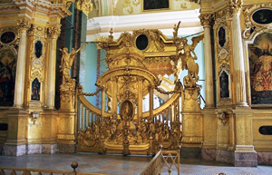 Петропавловский собор, один из монументальных символов северной столицы, строился в начале XVIII века по указу императора Петра Великого. Иконостас, созданный в 1725-1726 годах по эскизу итальянского архитектора Доменико Трезини русским зодчим Иваном Зарудным — уникальный памятник декоративного искусства петровского времени. Композиция Трезини ориентирована на западноевропейские барочные образцы.