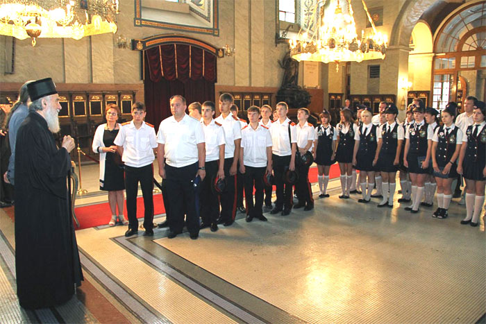 У присуству протојереја-ставрофора Виталија Тарасјева – старешине Подворја Московске Патријаршије у Београду, Патријарх Иринеј је разговарао са питомцима Московског козачког кадетског корпуса „Михаил Шолохов“ и Белокалитвинског козачког кадетског сабора “Матвеј Платов“.