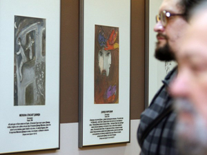 Здесь представлено 76 цветных и черно-белых литографий великого художника, собранных из частных коллекций в Германии. Это иллюстрации к Ветхому Завету, выполненные в неподражаемой манере мастера. Библейские цари и пророки лишены здесь привычной патетики и строгости. У Шагала они получились удивительно домашними, уютными. Не случайно искусствоведы замечают, что в этой серии сквозит его знаменитая витебская тема.