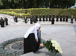Предстоятель Русской Церкви возложил к мемориалам венки и совершил молитву о упокоении вождей и воинов, за веру и Отечество живот свой положивших, и о людях, погибших во время массового голода, охватившего в 30-е годы прошлого века ряд областей Украины, России и Казахстана. Была пропета «Вечная память».