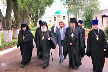 Далее Управляющий Ярославской епархией прибыл в Спасо-Яковлевский Димитриев мужской монастырь, где поклонился мощам Святителя Димитрия, митрополита Ростовского. Святитель Димитрий является Небесным покровителем города Ростова–на-Дону, где в течении 16 лет совершал свое служение Высокопреосвященнейший Пантелеимон.
