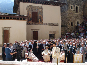 Обращаясь к Святейшему Патриарху Константинопольскому Варфоломею, Владыка Пантелеимон сказал: «Ваше Святейшество, от лица всех паломников позвольте поздравить Вас с торжеством по случаю престольного праздника древнего монастыря Панагия Сумела и пожелать Вам доброго здоровья и многих лет жизни».