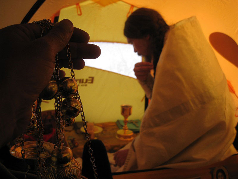 Свако од њих је имао свој задатак, па је још током припрема за пењање било јасно да неће сви моћи ићи до врха. Јеромонах Игор (Васиљев) је служио литургију, а непосредно на Источном врху су му помагали Виктор Арчавадзе и Александар Волошчук.