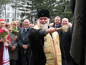 Монумент был установлен на территории Спасской церкви на нижней набережной реки Ангары, а само мероприятие приурочено к празднованию 350-летия со дня основания города.