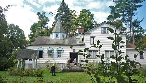 Дорога к первому дому Путеводительницы русского зарубежья – иконы Пресвятой Богородицы «Одигитрии» Курско-Коренной – теряется в одноэтажной Америке, бежит между озер и дубрав. Полтора часа из Нью-Йорка на север. Еще один поворот – и слева, под сенью вековых кленов – полукруглая арка с куполом-луковкой и надписью, как и в десятках подобных русских монастырей: «Благословен грядый во имя Господне». «Грядем» через арку, и вот он – деревянный храм в честь Рождества Пресвятой Богородицы.