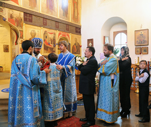 Далее митрополит Иларион обратился со словом приветствия к настоятелю храма отцу Игорю, пожелав, чтобы приход процветал, чтобы увеличивалось число прихожан не только русского, но и китайского происхождения, потому что это единственный храм в Москве, где богослужение совершается, в том числе, и частично на китайском языке: