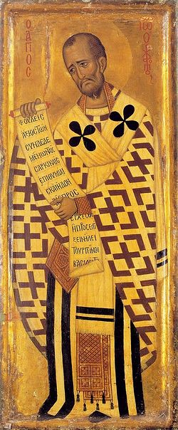 Убежденный в оригенизме Иоанна, Епифаний по прибытии в Константинополь не принял приглашения архиепископа столицы остановиться у него в резиденции. Гостя сразу окружили недруги Златоуста, и он пошел на такой канонически недопустимый шаг, как рукоположение в диакона без санкции со стороны правящего епископа. Епифаний служил в церквях столицы без приглашения правящего архиерея, но, когда он попытался войти для совершения литургии в кафедральный храм 12 апостолов, архидиакон Серапион преградил ему вход в храм, сказав: «Как это так епископ Епифаний вторгается в чужой храм без законного разрешения епархиального начальника?» Епифаний, по замечанию А.В. Карташева, «был неистовый, но честный человек. Он внял объяснениям Серапиона»[17] и решил вернуться домой. Сократ Схоластик писал: «Некоторые говорят, будто перед самым отплытием он так сказал Иоанну: “Умрешь епископом”, – на что Иоанн отвечал: “Надеюсь, что ты не достигнешь отечества”. Не могу утверждать, правду ли говорили те, от которых я слышал это, но предсказания сбылись над обоими»[18]: на обратном пути на Кипр святой Епифаний скончался в возрасте 96 лет.