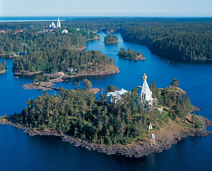 Уже в 1719 году на Валааме освятили деревянный Преображенский храм – над мощами преподобных Сергия и Германа, а на окрестных островах начали устраивать новые скиты. В 1755 году была освящена Успенская церковь, в 1757 году – новый пятиглавый Преображенский собор, в 1763 году – Рождественская церковь. Большие вклады на строительство обители дважды вносились императрицей Елизаветой Петровной.
