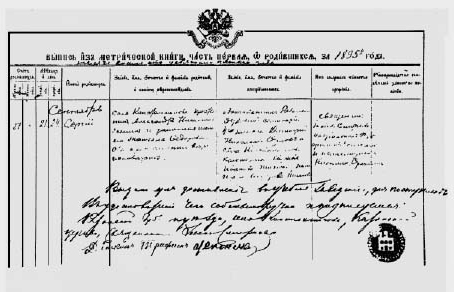 | Выпись из метрической книги о рождении и крещении Сергея Александровича Есенина |
