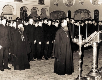 | Архиепископ Александр (Тимофеев) с воспитанниками Московских духовных школ |