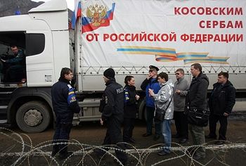 Конвој камиона руске хуманитарне помоћи за Србе са Космета прелази административни прелаз Јариње. Додели помоћи у Косовској Митровици, између осталих, присуствоваће и амбасадор Русије у Београду Александар Конузин.