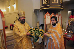 Архиепископ Елисей совершил православную Литургию в кафедральном лютеранском соборе Домкирке в сослужении настоятеля Никольского прихода священника Тимофея Золотуского и клирика Сурожской епархии протодиакона Димитрия Недоступенко.