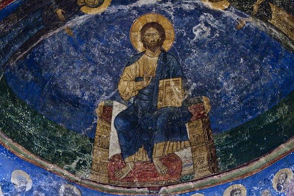 | Спас-Вседержитель. Фреска из Спасо-Мирожского монастыря |