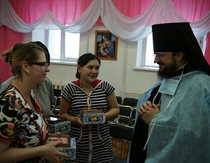 Он посетил роддом Национального Центра медицины №1 Центра охраны материнства и детства и второе родильное отделение Городской клинической больницы г.Якутска, поздравляя мам, благословлял их чад, даря сладкие подарки и иконы.