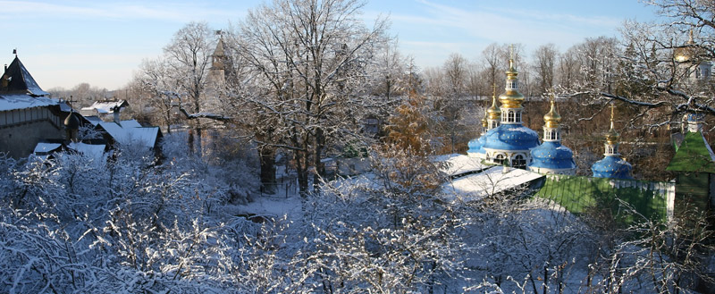 Фото: Винокуров Николай Сзади Успенской церкви, у самой кровли и как бы над кровлей ее, с юго-западной стороны возвышаются остатки маститых величественных дубов, современных самому монастырю. Это памятники тех лесов, которые некогда покрывали горы Псково- Печерского монастыря, и того времени, когда жили здесь пустынноподвижники, — живые свидетели тех событий, о которых так мало сохранилось до нас свидетельств письменных.