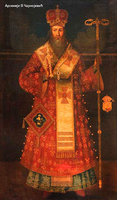 Међу тим старим митрама нарочито се истиче митра патријарха Арсенија Чарнојевића III, коју је добио од града Москве, овакако са осталим одејањем, као дар за услуге које је учинио Русији, односно руском посланику Богдану Возницину за време Карловачког конгреса 1688-9 године.