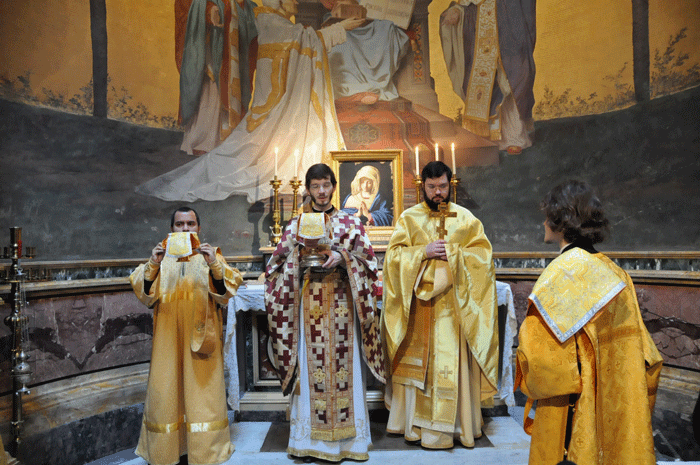21 февраля 2012 года в римской базилике святого Климента, где под престолом почивают честные мощи святого равноапостольного Кирилла, учителя Словенского, богослужение совершили ректор Русской духовной семинарии во Франции иеромонах Александр (Синяков) и секретарь Администрации приходов Московского Патриархата в Италии иеромонах Антоний (Севрюк), сообщает сайт Екатерининского храма в Риме.