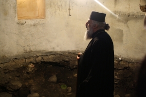 — Мы сомневались в необходимости такого решения, тем более что окончательно его утвердить мог только Святейший Патриарх Илия. Однако в любом случае необходимо было провести реставрационные работы внутри самой церкви: поменять пол, поставить новый мраморный престол. Нынешняя церквушка была восстановлена без специального проекта местными жителями в 1988 году на месте разрушенной большевиками. Уверенность, что именно здесь покоятся мощи преподобного, у нас была, потому что из поколения в поколение передается предание об этом. В годы советской власти в народе почитали это место как могилу преподобного Максима. До сих пор сохранилась древняя традиция, когда жители окрестных деревень собираются здесь и просят у преподобного хорошей погоды или просто помощи.