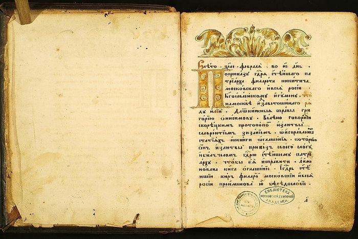 Еще одной заботой Патриарха Филарета стало попечение о книгоиздании и духовном просвещении. Быть может, личная богословская необразованность и делала Филарета таким активным поборником развития книжности? Тем не менее, при его участии типографское дело в Москве стало быстро развиваться. В 1620 г. был восстановлен старый Печатный двор на Никольской улице, сгоревший при поляках. Возрожденная в 1613 г. в Кремле типография была возвращена на свое исконное место в Китай-городе. При Филарете в ней работало 7 печатных станков. Справщики при типографии были подобраны весьма квалифицированные. В их числе были уже упомянутые Арсений Глухой и Иван Наседка. К ним добавились старец Антоний Крылов, Богоявленский игумен Илия и мирянин Григорий Онисимов. Большинство из них знали греческий, и справщики использовали в своей работе греческие книги. При справщиках состоял целый штат писцов и чтецов. Для них было выделено специальное помещение – «Правильная палатка», куда со всей России свозились древние книги для сличения с ними текстов при справе.