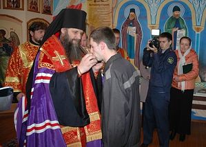 Особо отличившихся сотрудников и осужденных ИК владыка отметил епархиальными наградами, а заключенные преподнесли ему прекрасную шкатулку с четками, сделанную своими руками.