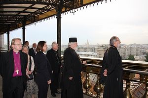 В столичном аэропорту «Шереметьево» делегацию встречали исполняющий обязанности секретаря ОВЦС по межхристианским отношениям протоиерей Димитрий Сизоненко, сотрудники ОВЦС священник Михаил Боданов, А. Хошев, А. Борзов.