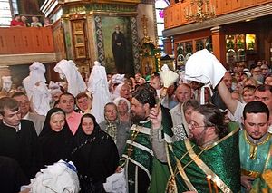 За богослужением молились медицинские работники из Общества православных врачей Крыма имени Святителя Луки, представители Министерства здравоохранения АРК. У раки со святыми мощами Святителя отец Александр благословил врачей и медсестёр на дальнейший нелёгкий, но такой благодатный труд.