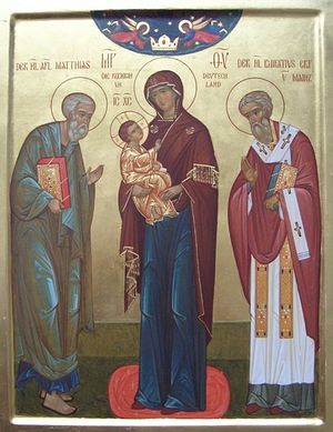 | Святой апостол Матфий и святитель Бонифаций предстоящие перед Богородицей |