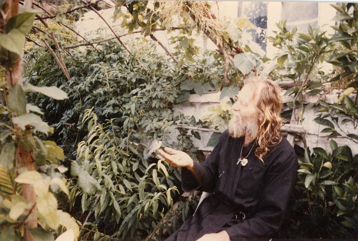 Как-то к отцу Илье приехал друг из России, и он повёл его к отцу Стефану благословиться. У почти восьмидесятилетнего старца – глаза голубые, как небо, он много лет не мылся по обычаю афонских монахов, при этом никакого запаха не было. Он мало ел, предпочитал сухоядение: в карманах всегда была сухая вермишель, которую ел сам и кормил ею птиц.