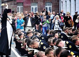 молодых офицеров святой водой.