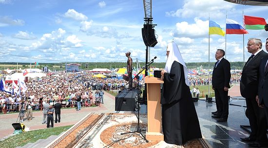 30 июня 2012 года Святейший Патриарх Московский и всея Руси Кирилл принял участие в открытии Международного фестиваля славянских народов «Славянское единство — 2012» на границе России, Белоруссии и Украины. В заключении церемонии открытия фестиваля Предстоятель обратился с первосвятительским словом к его гостям и участникам, подчеркнув в нем особое значение исторического и духовного единства народов России, Украины и Белоруссии.