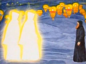 Через 50 лет уединенной жизни преподобный Христофор услышал небесный глас, который повелел ему вернуться в свой монастырь, чтобы окончить дни вместе с братиями во Христе.