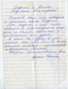 За него молился архимандрит Иоанн Крестьянкин: та самая преподавательница вуза, духовная дочь отца Георгия, вступила с ним в переписку и рассказала, как тяжко приходится ее духовному отцу. «А я Вашу просьбу о молитве за отца Георгия выполняю! Храни Вас Господь», — это короткая записка, а потом: