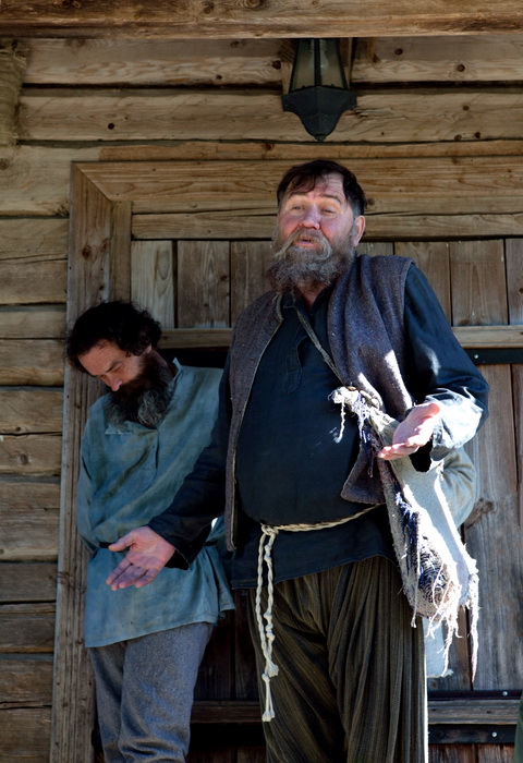 Николай Кучиц: В «Притчах» у меня не роль, не эпизод, а рисуночек такой: я навеселе выхожу из трактира, и цыган ворует у меня колбасу. Что Бог дал, то и сыграл. Сверхзадачи большой здесь не было. На съемках Студии во имя святого Иоанна Воина впервые. Атмосфера здесь хорошая. Я это почувствовал сразу, когда на кастинг пришел. Обычно на съемках кино крики, нецензурщина, так называемый киношный «английский». А здесь — хорошо и спокойно.