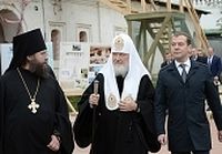 По прибытии в монастырь Святейший Патриарх Кирилл и Д.А.Медведев в сопровождении наместника обители осмотрели уже завершенные объекты — здание воскресной школы рядом со святыми вратами и надвратную церковь, а затем посетили основной храмовый комплекс, в котором проводятся масштабные реставрационные работы.