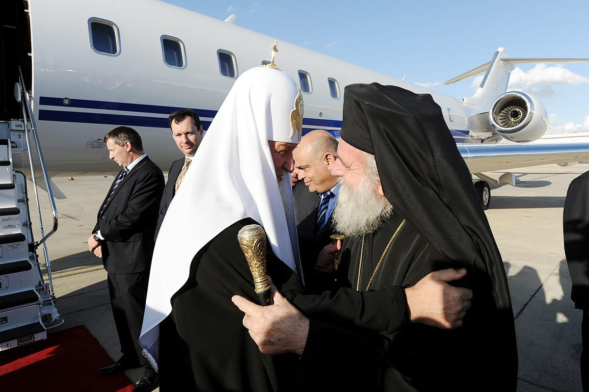 В аэропорту «Бен-Гурион» Святейшего Патриарха Кирилла встречали иерархи Иерусалимского Патриархата митрополит Капитолиадский Исихий и архиепископ Иорданский Феофилакт, министр туризма Израиля Стас Мисежников, Чрезвычайный и Полномочный посол России в Израиле С.Я. Яковлев, представитель России при Палестинской национальной администрации А.Н. Рудаков, представитель Патриарха Иерусалимского при Московском Патриаршем престоле архимандрит Стефан (Диспиракис), начальник Русской духовной миссии в Иерусалиме архимандрит Исидор (Минаев).