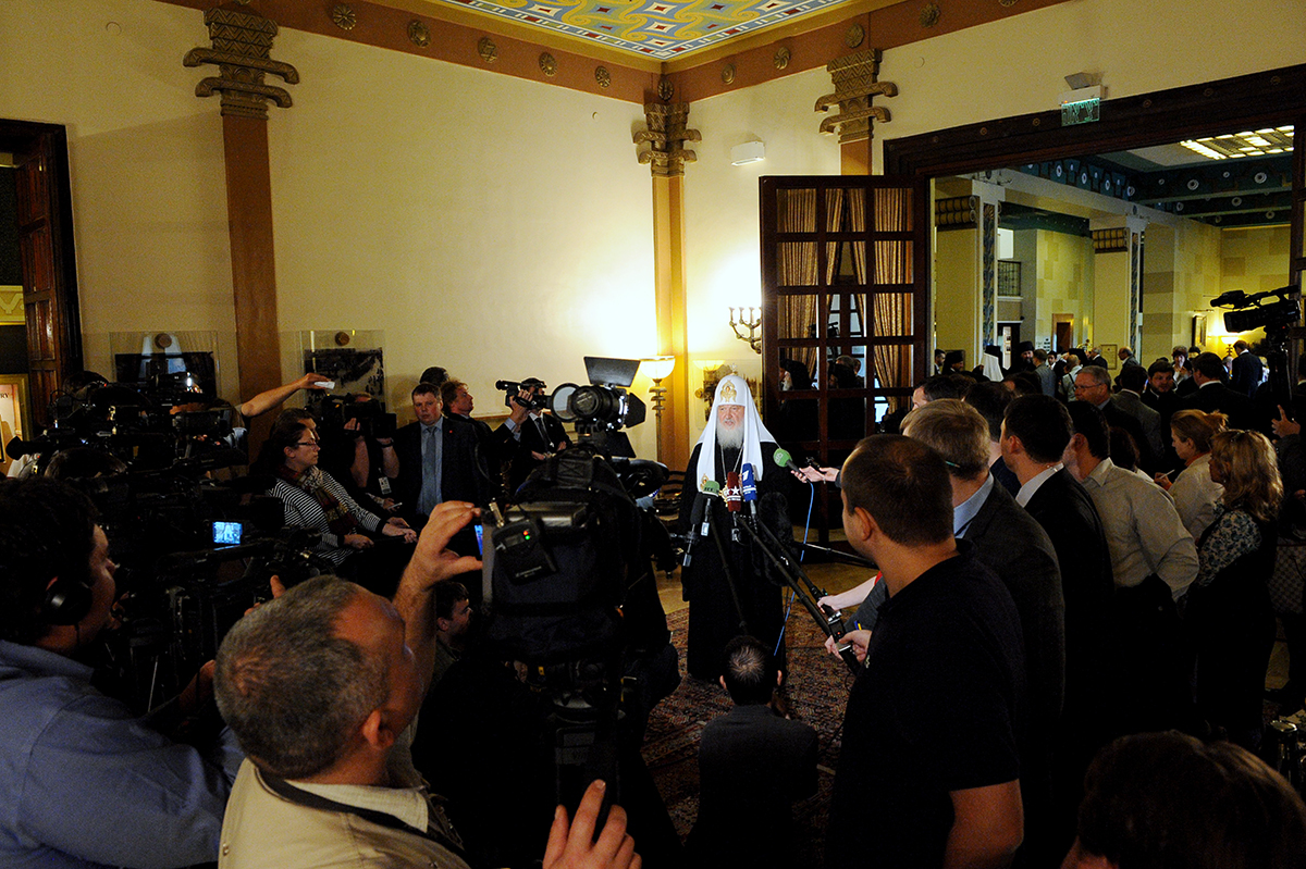 Обратившись к представителям средств массовой информации, Святейший Патриарх Кирилл отметил, что прибыл на Святую Землю впервые после избрания на Патриарший престол:
