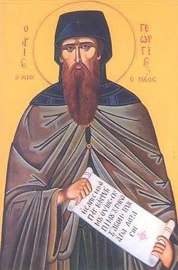 В 1797 году во время кровавых расправ, учиненных турками над восставшими греческими христианами, отца Георгия призвали в селение Малакопи занять место священника, скрывшегося, чтобы спастись от турок. По дороге он встретил нескольких турецких пастухов. Они оскорбили и обокрали его, а затем обезглавили. Так святой пресвитер присоединился к сонму мучеников.