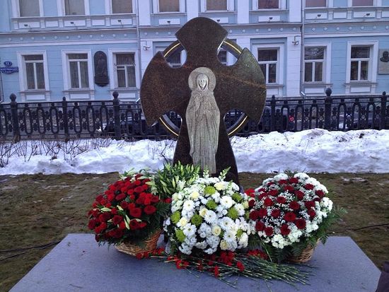 Позднее на Рождественском бульваре состоялось торжественная церемония открытия поклонного креста в память о святой, по воле которой в 1395 году в Москву была принесена чудотворная Владимирская икона Божией Матери, спасшая Русь от нашествия Тамерлана.